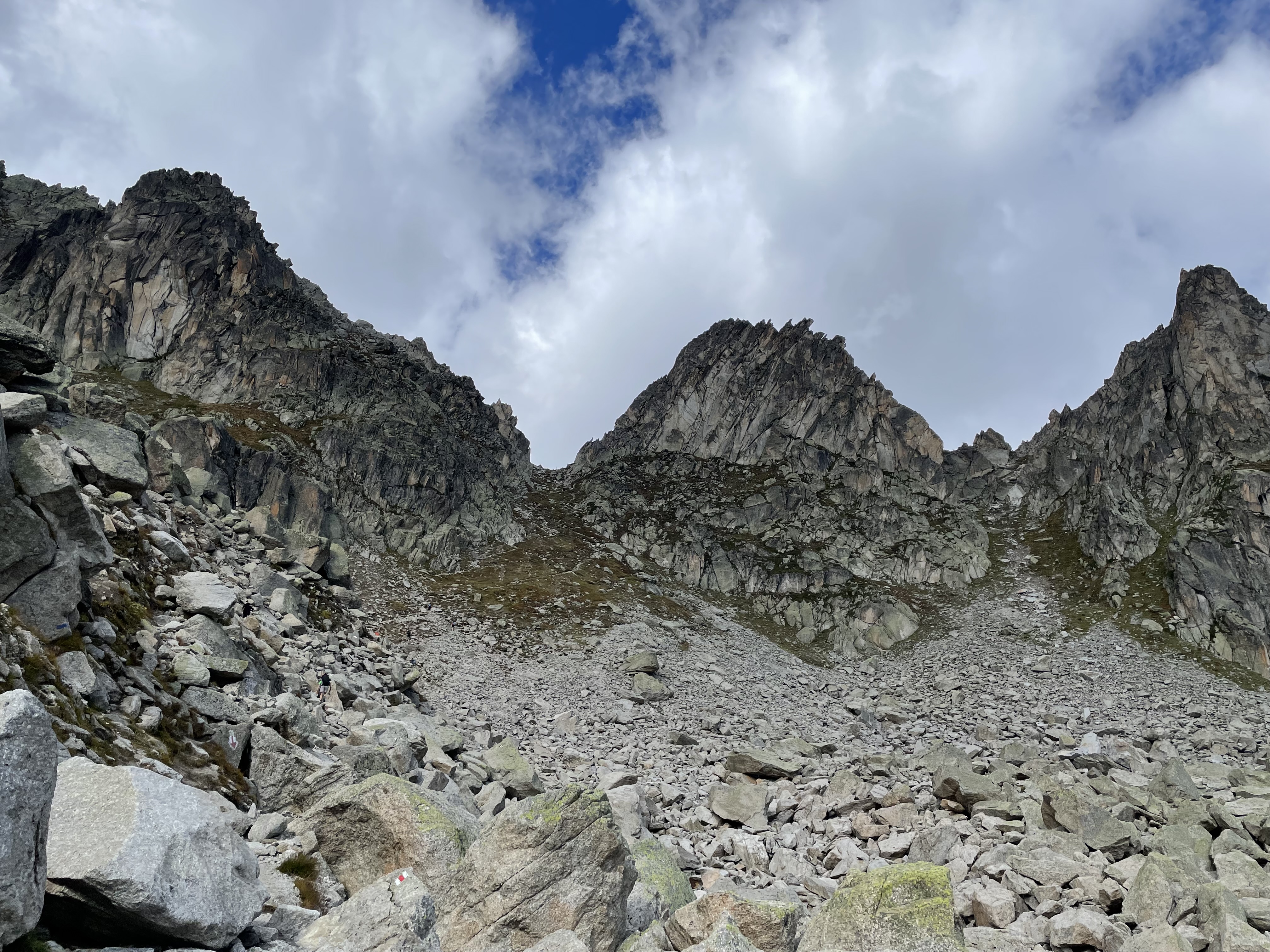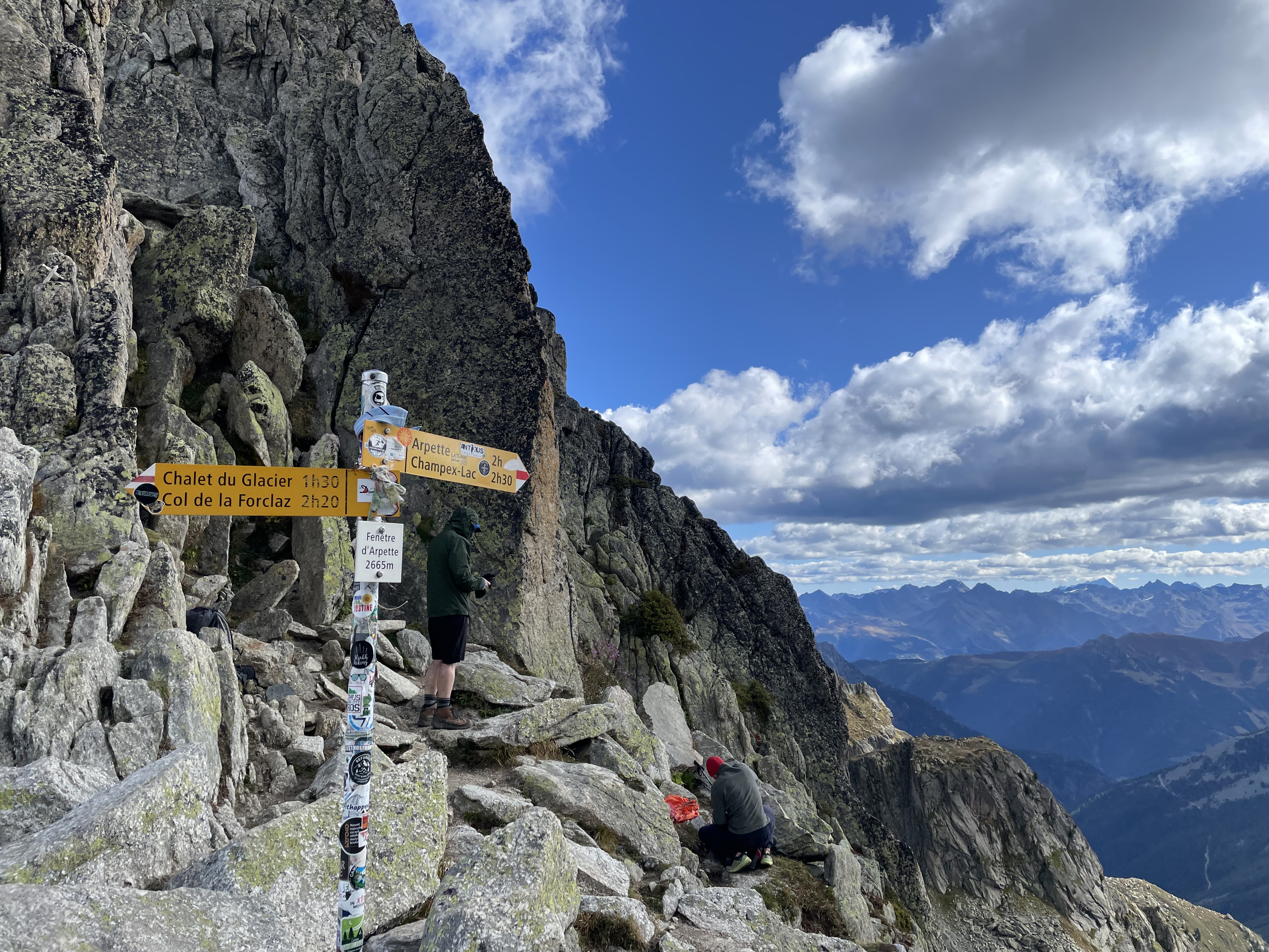 Today was a brilliant single shot of hiking that, to be honest, I wasn't fully expecting. The entire focus of the day was to get up to a very narrow col, at 8,600 feet the literal high point of the Tour for me, and then get down from it. The col is so narrow that it is called "the window of Arpette," Arpette being a small village that I passed by on the way up.