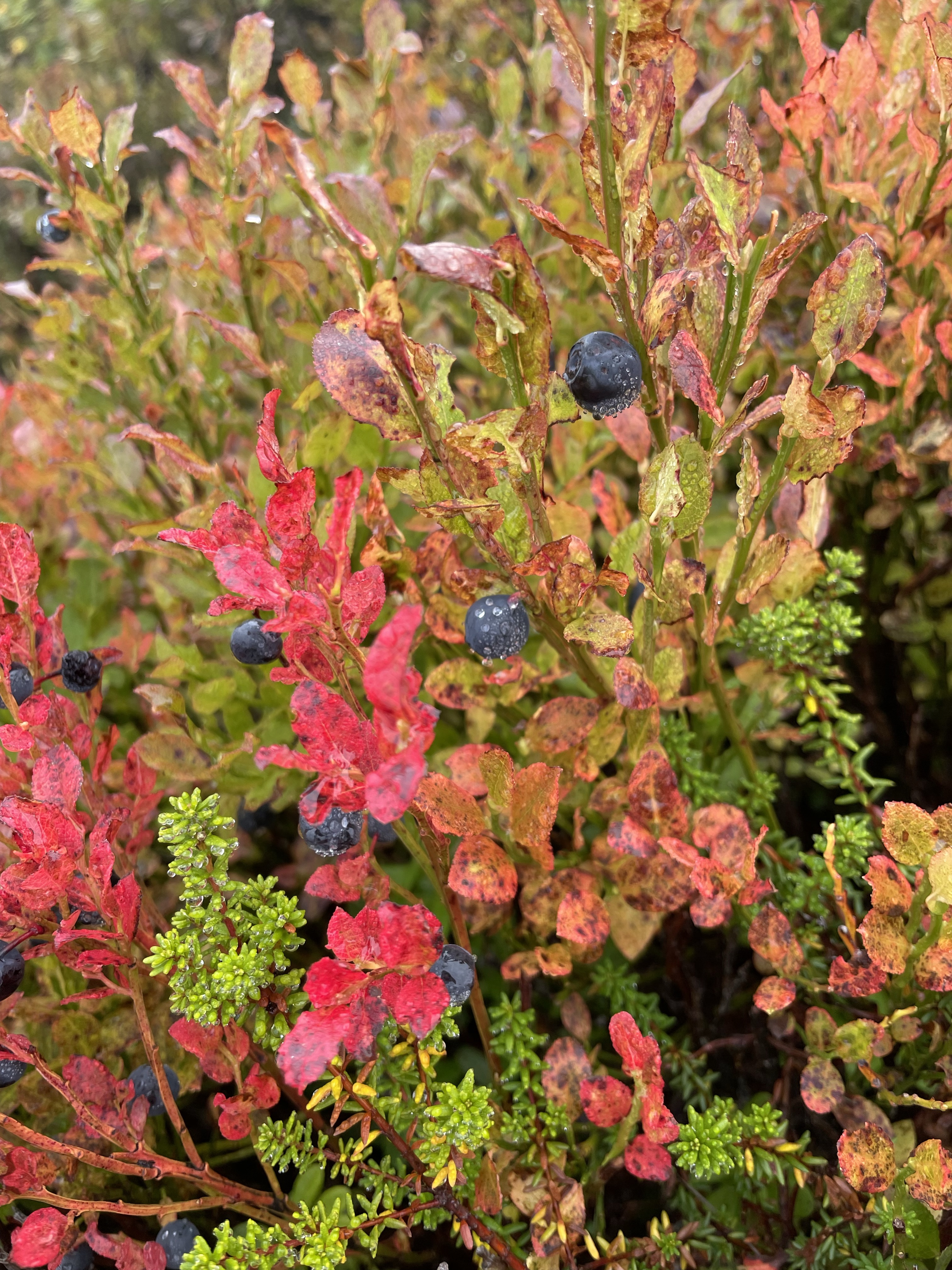 I'm back in France and the Chamonix Valley. Today's hike was fairly short and uneventful. The higher elevations were socked in with clouds, but at the start of the day I was able to see the small notch in the high ridge I had come through yesterday. And when I was most of the way down, the sun came out and I got views of Mont Blanc and the rest of the massif. There were some tasty blueberries near the top.